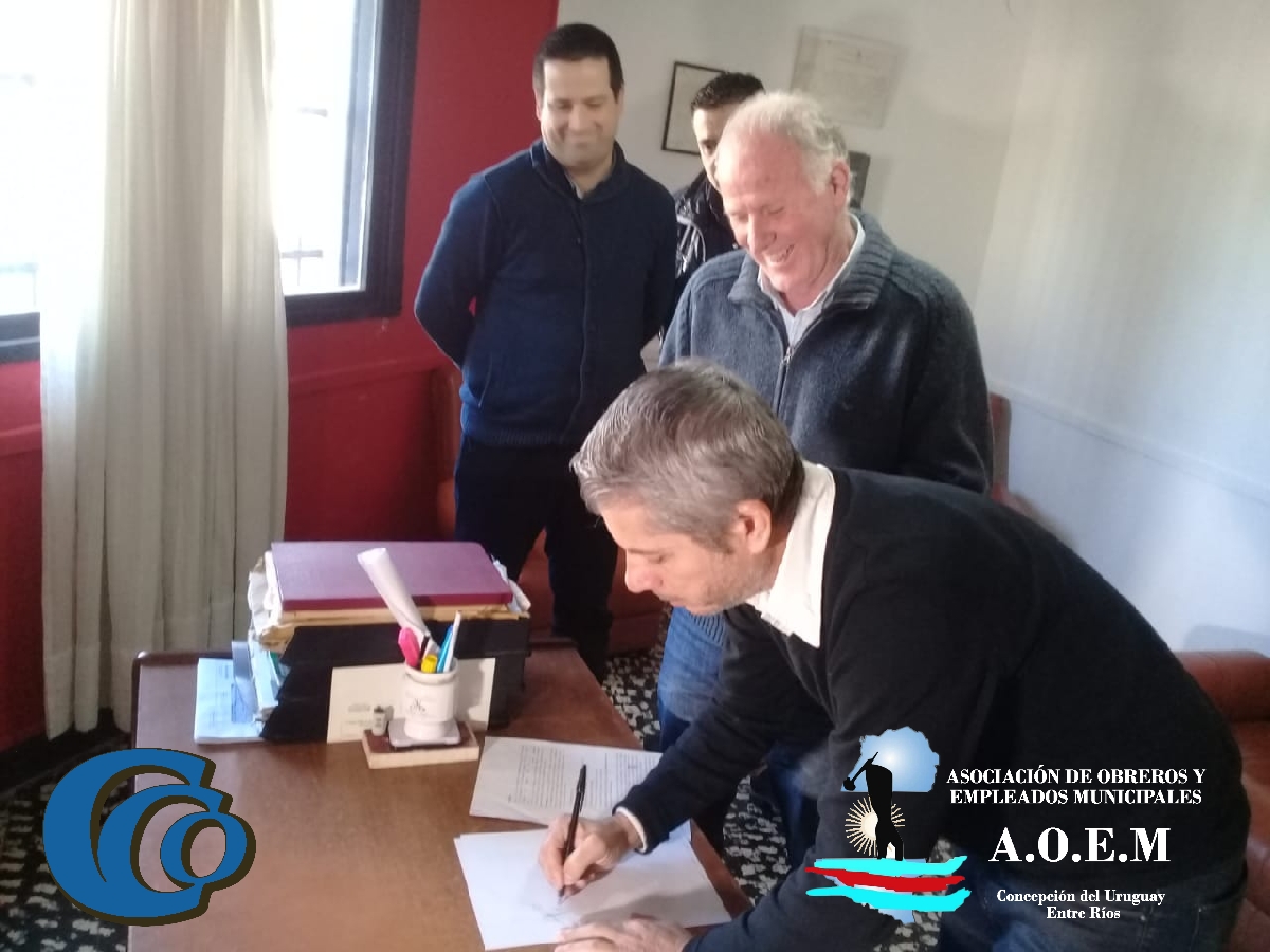 Mario Barberan como Secretario General de FESTRAM y AOEM firmó un convenio con el Sr. Marcelo Gabino, representante del Circulo Católico Obrero de Concepción del Uruguay. El convenio suma beneficios a la Familia Municipal de Concepción del Uruguay con un costo totalmente accesible. El Circulo Católico Obrero (CCO) es una institución que desde hace más de un siglo trabaja incansablemente para beneficio de sus asociados ofreciendo diversos servicios que van desde farmacia, centros recreativos, salones de fiesta, servicios de ambulancia equipadas para traslados complejos hasta uno de los cines más importantes del corredor de la Costa del Uruguay.