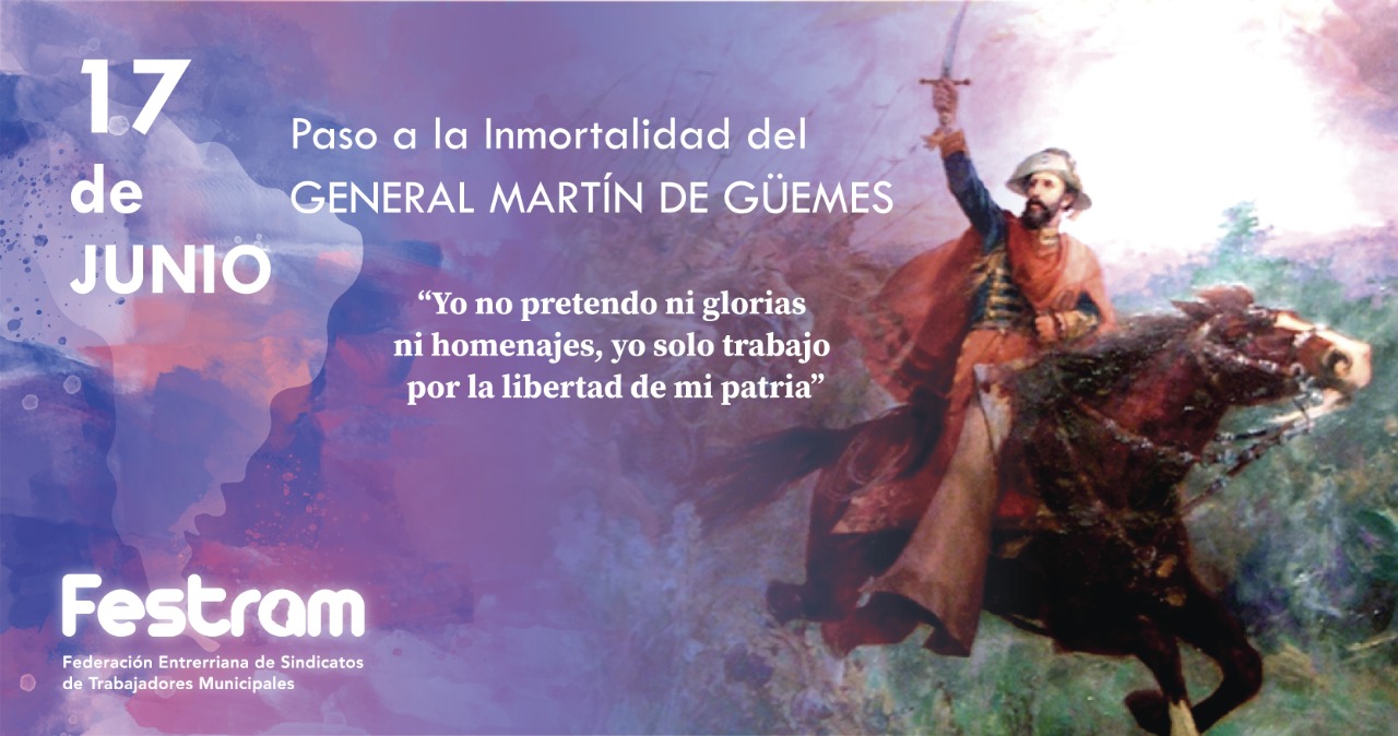 El 17 de junio se conmemora en Argentina el paso a la Inmortalidad del general Martín Miguel de Güemes, quien fue un importante militar y político argentino que participó activamente en la guerra para la independencia de Argentina.