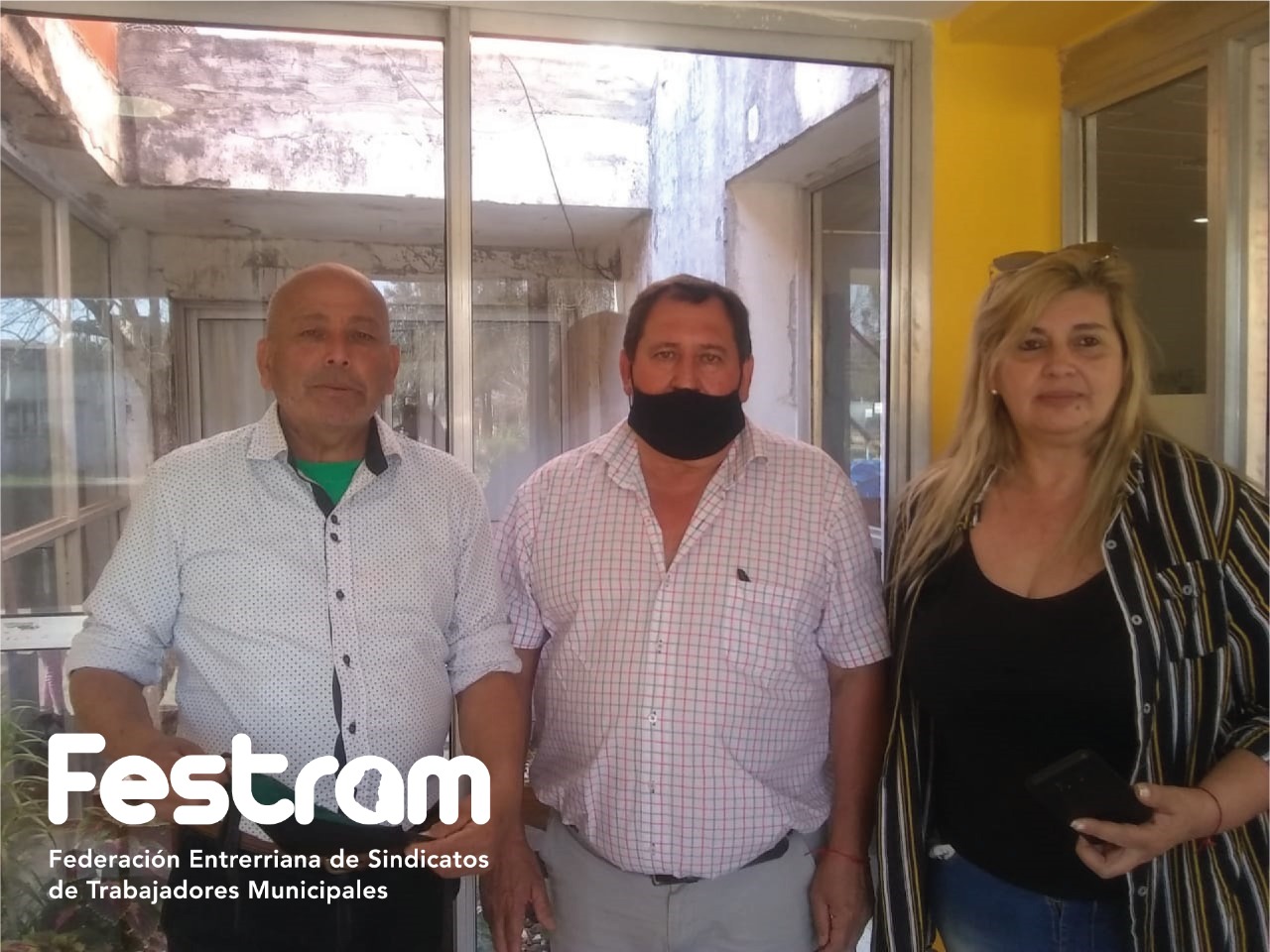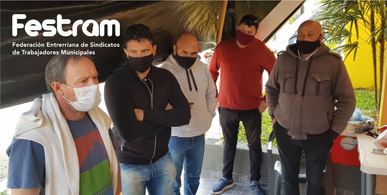 Compañeros municipales del gremio de base de Sauce de Luna, con Pedro Aliano como Secretario General, visitaron ayer la localidad de San Jaime de la Frontera para acompañar a los trabajadores que fueron despedidos sin causa, justificación y en contra del decreto presidencial.