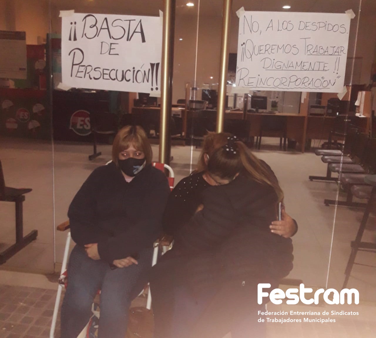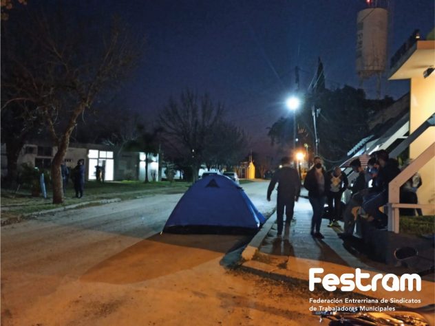 Actualmente ya hay compañeros encadenados en la puerta de la municipalidad con carpas y ollas populares y la Federación, en representación de 44 gremios en toda la provincia, también está presente apoyando a la Familia Municipal.